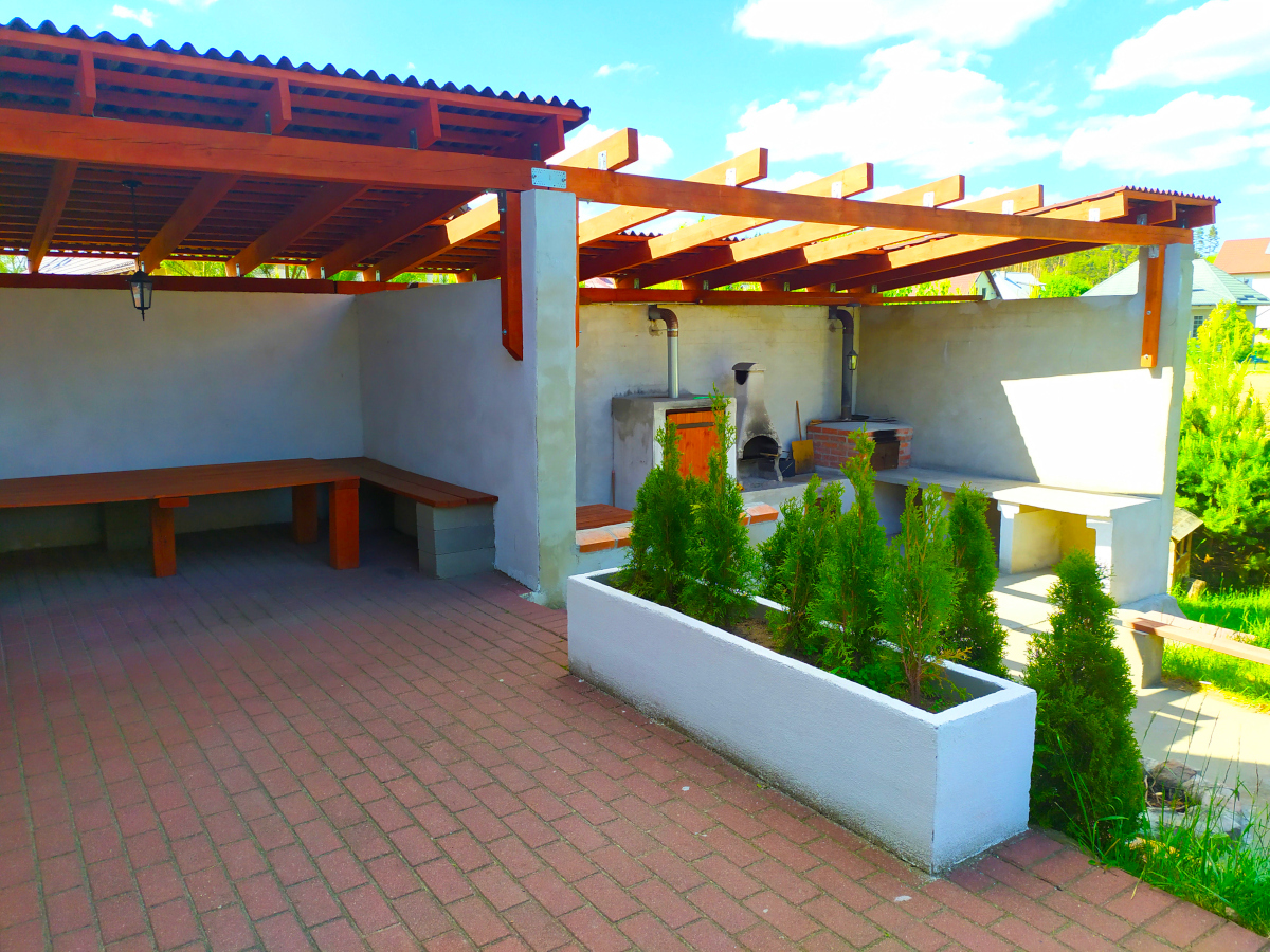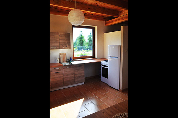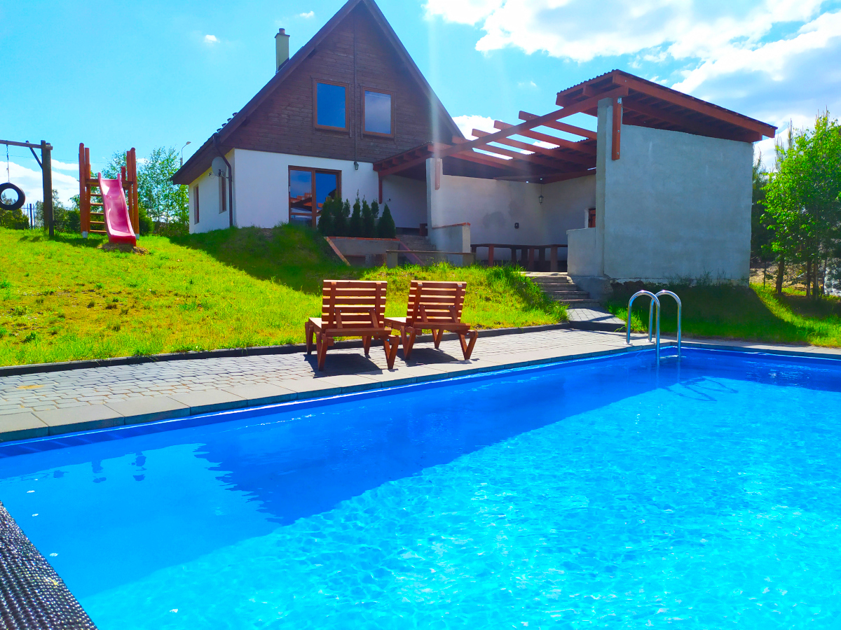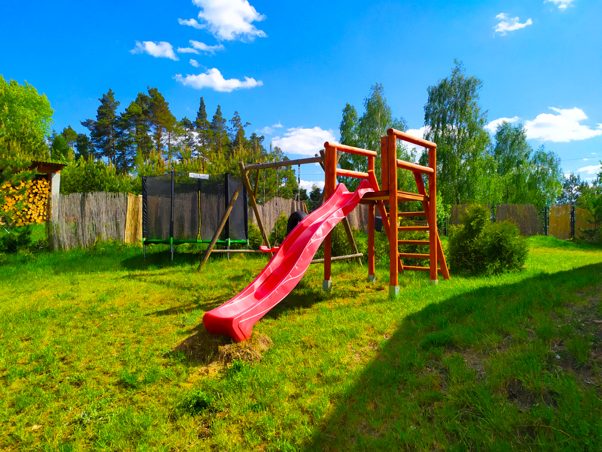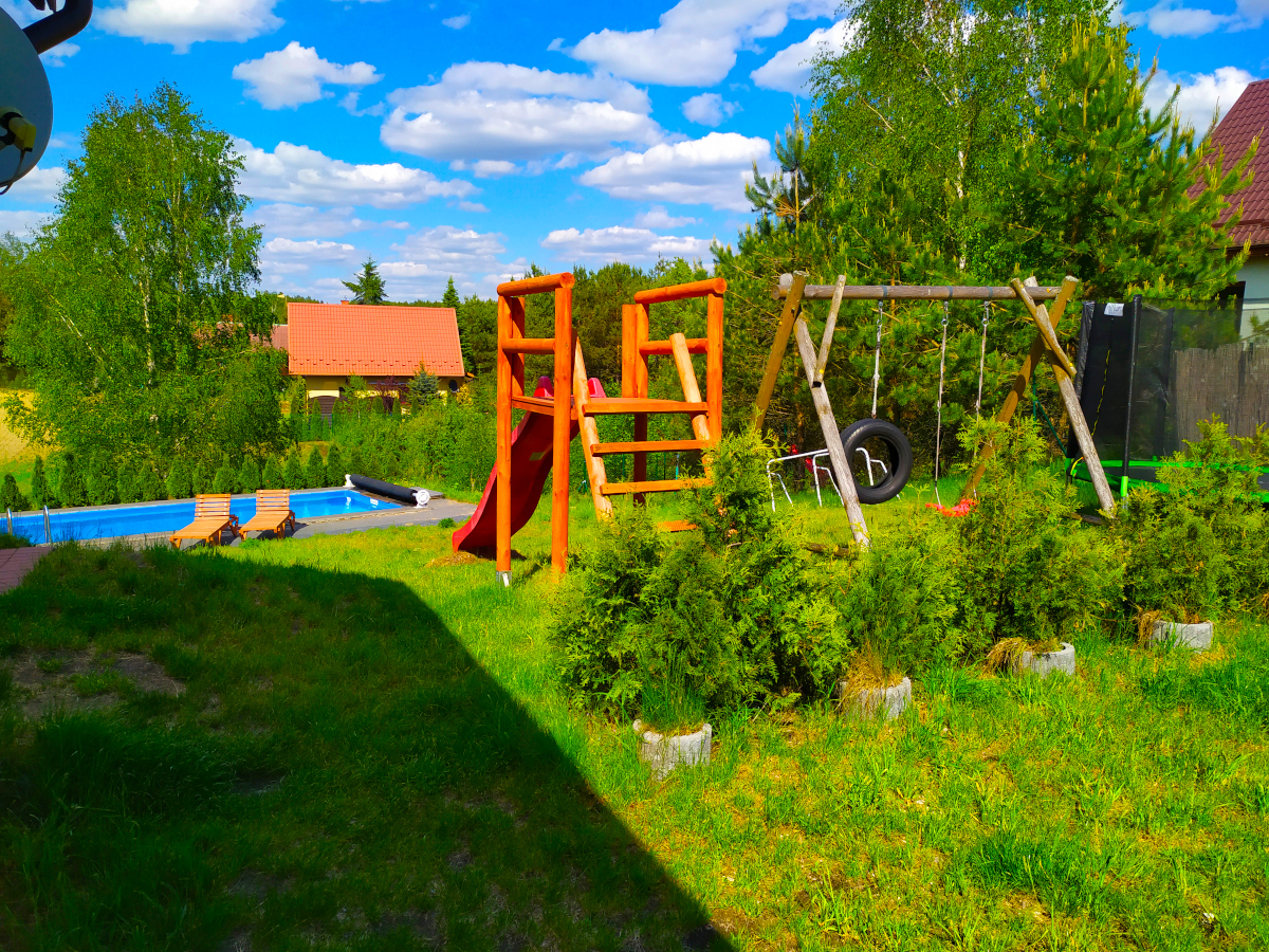 Sprawdź dostępnośćDom z basenem na Kaszubach " Lena " ma powierzchnię 110 metrów kwadratowych. Znajduje się na ogrodzonej działce o powierzchni 1000 metrów kwadratowych, która jest na wyłączność gości domu Lena. Dom posiada salon, kuchnię, saunę, dwie łazienki oraz 3 sypialnie. Na parterze domu znajduje się: Salon z kominkiem i z aneksem kuchennym (kuchnia wyposażona w lodówkę, kuchenkę gazową, piekarnik elektryczny, czajnik, garnki, komplet talerzy, szklanek, kubków, sztućców itd. ) Łazienka z kabiną prysznicową, umywalką, ubikacją Sauna Wyjście na częściowo zadaszony taras z którego w zasięgu wzroku jest plac zabaw dla dzieci oraz basen. Na piętrze domu znajduje się: Druga łazienka z wanną, umywalką, ubikacją oraz pralką automatyczną Trzy sypialnie (w jednej sypialni znajduje się łóżko dwuosobowe, w dwóch pozostałych znajdują się: jedno łóżko dwuosobowe oraz jedno jednoosobowe) Zapewniamy czystą pachnącą pościel. Ręczniki prosimy zabrać ze sobą. Sypialnie przygotowane są dla 8 osób. Zorganizowanie miejsca do spania (materace, pościel) dla liczby osób większej niż osiem pozostawiam w gestii wczasowiczów. Na działce znajduje się: Sezonowy basen o wymiarach: długość 7 metrów, szerokość 3 metry, głębokość 1.2 metra. Basen dostępny jest od maja do października włącznie. Temperatura wody uzależniona jest od temperatury powietrza oraz nasłonecznienia. Miejsce na ognisko Grill Piec do pizzy, chleba opalany drewnem Wędzarnia Huśtawka Trampolina Domek dla dzieci Bramki piłkarskie dla dzieci Piaskownica Hamak Miejsca parkingowe Dom posiada ogrzewanie kominkowe z rozprowadzeniem ciepła do każdego z pomieszczeń oraz grzejniki konwektorowe.